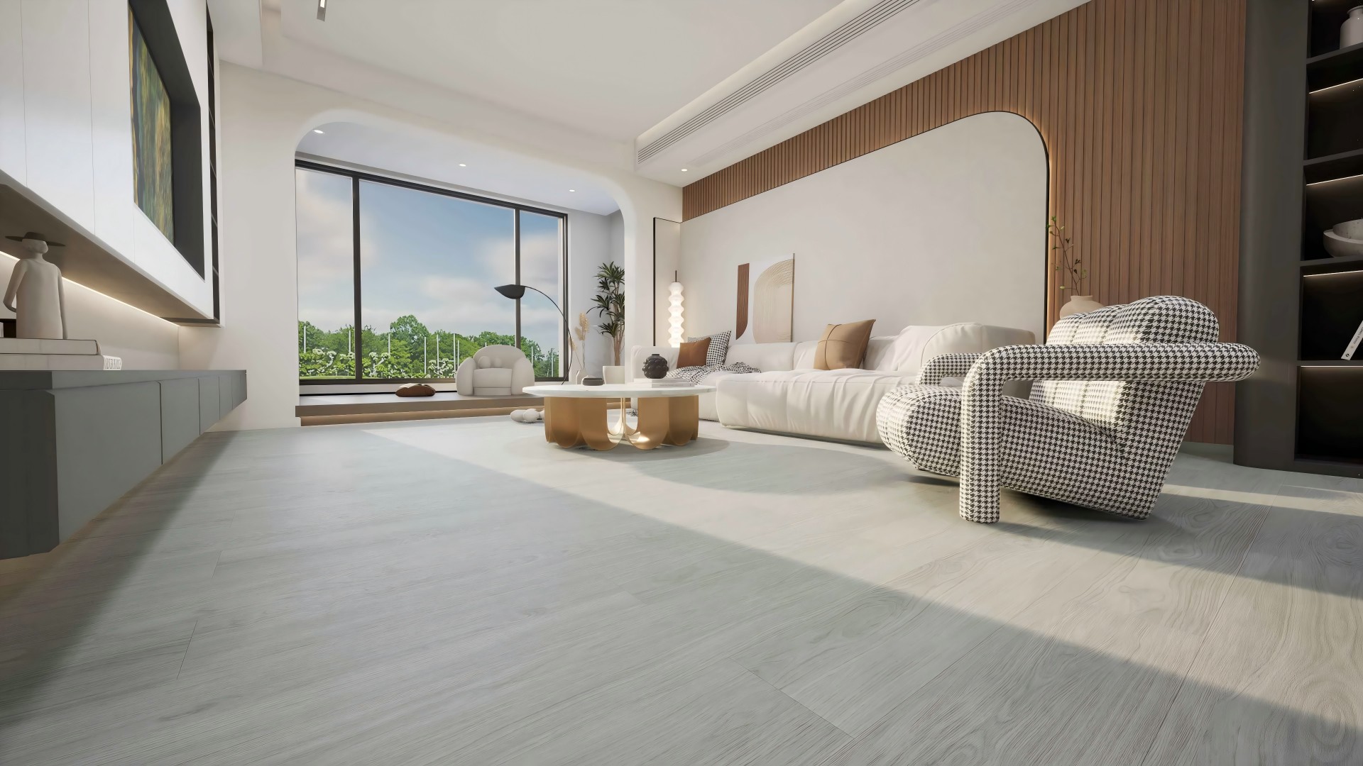 沙灰色的色調,如同清晨的薄霧, 自然木紋元素與現代簡約風格完美交融, 仿佛置身於清晨微光灑落的森林木屋, 讓空間充滿質樸交織的自然之美。